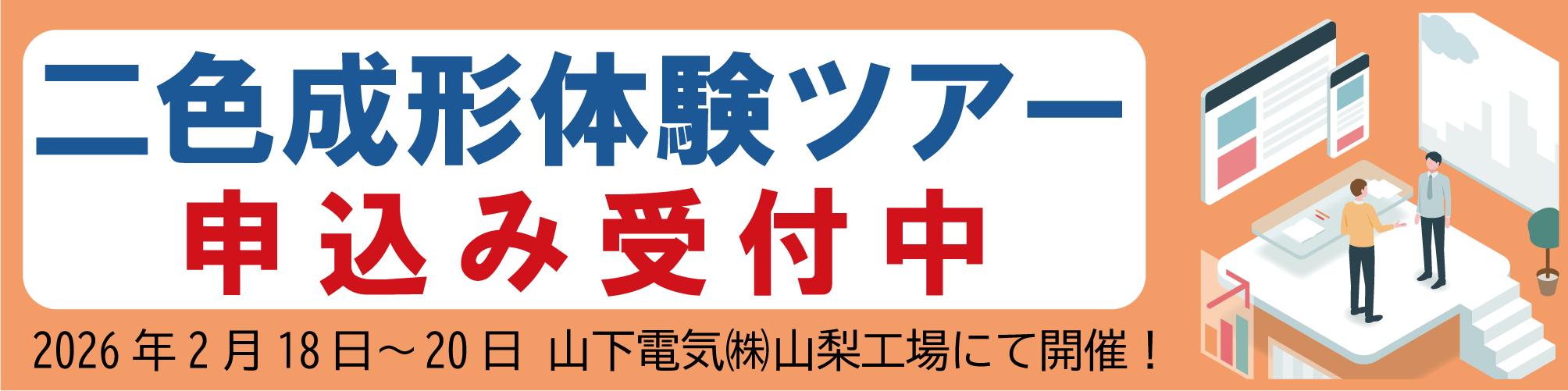- 2色成形技術へのご関心をお持ちの皆様に向けて、「2色成形体験ツアー」を開催いたします。
